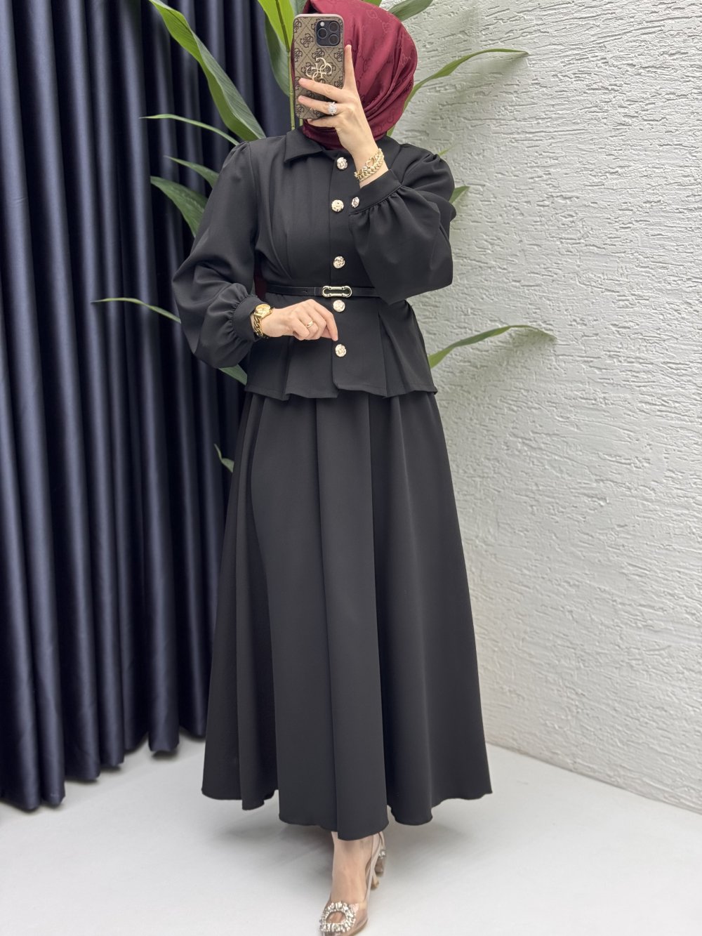 Bihter Etekli Takım Tesettür Giyim Siyah
