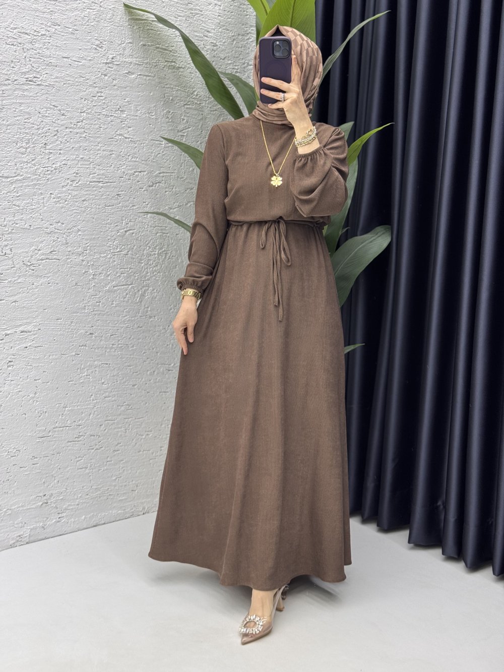 Billur Elbise Tesettür Giyim Kahverengi