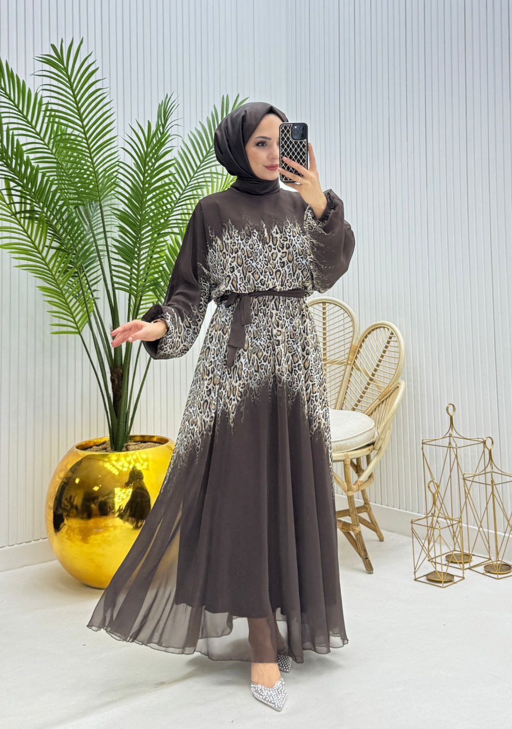 Bonni Tesettür Elbise Kahverengi Kahverengi