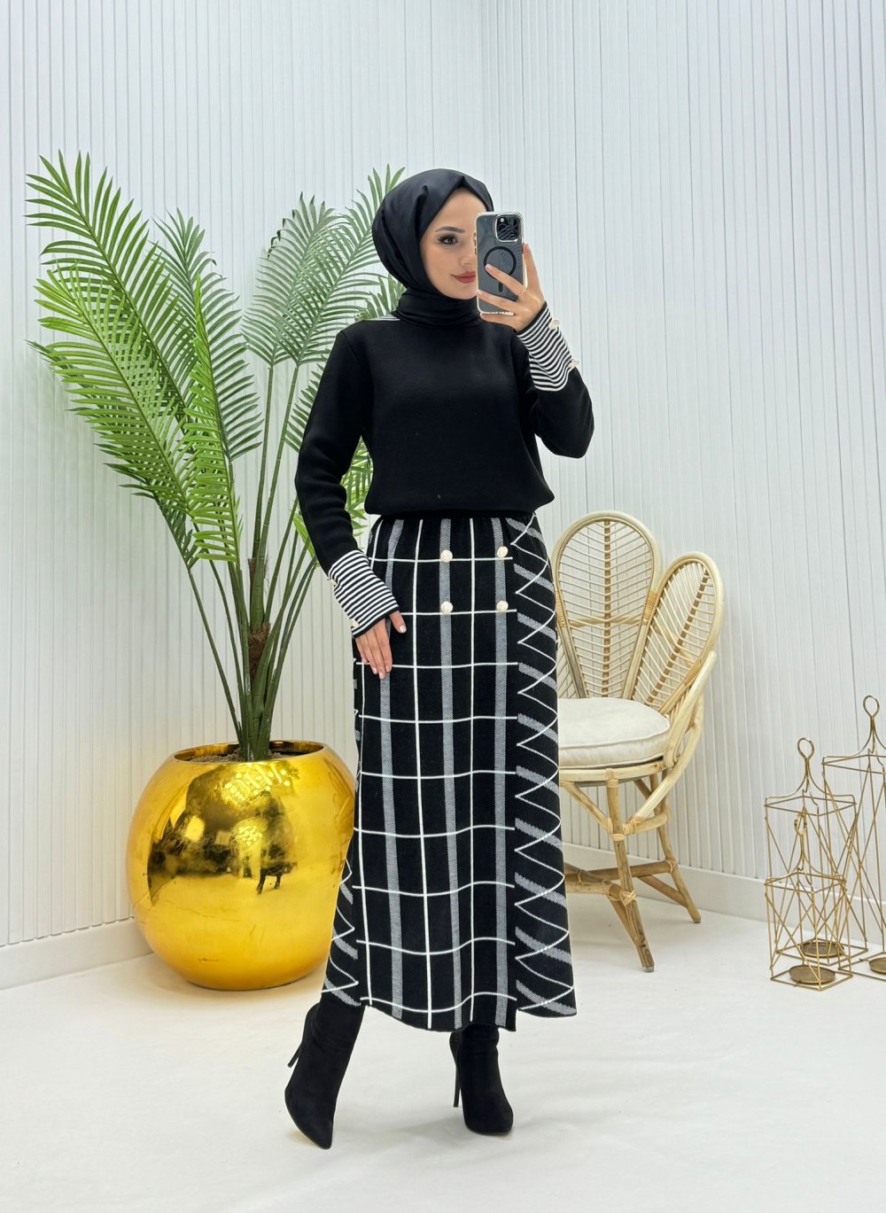 Çizgi Detay Tesettür Takım Siyah Siyah