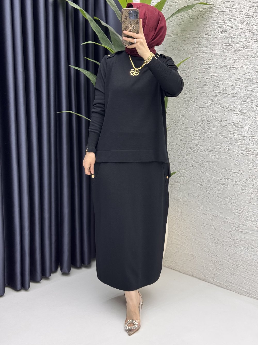 Dilan Etekli Takım Tesettür Giyim Siyah