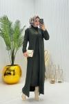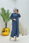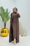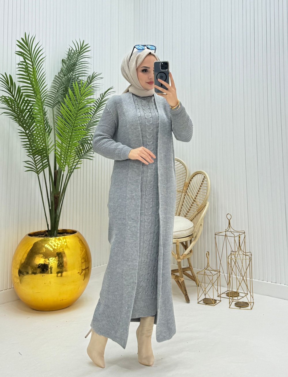 Ürünün Kumaşı ;%100 Triko Örgülü Kumaştan İmal Edilmiştir. Ürünün Beden Aralığı ;standart beden 36-42 beden arası uyumlu Ürünün Boyu;elbise 130 hırka 135 cm Ürün iç elbisesi uzun kolludur ve üstünde hırkası mevcuttur Kışlık kullanima uygundur Ürün renginde konsept çekimlerinden dolayı ton farklılığı olabilir