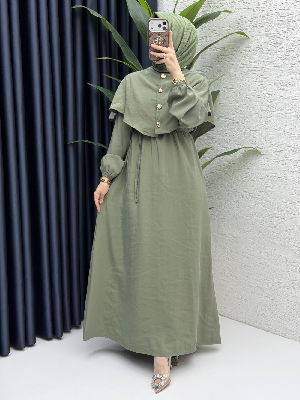 Feriha Bolero Elbise Tesettür Giyim Küf Yeşili