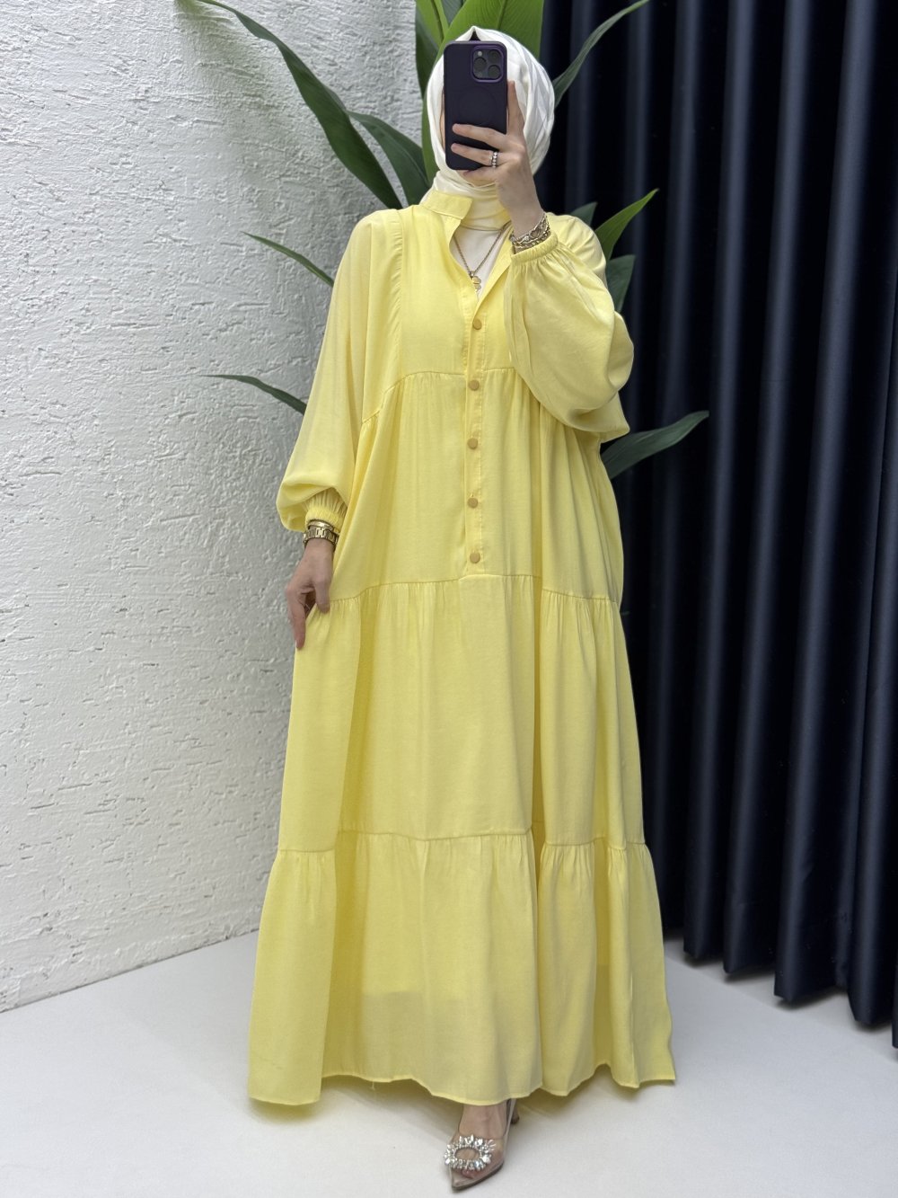 Hale Elbise Tesettür Giyim Sarı