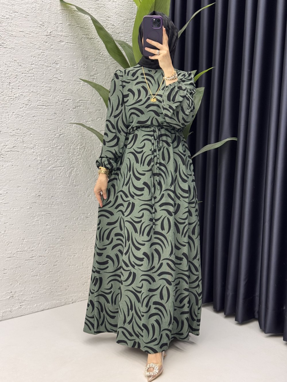 Hanne Elbise Tesettür Giyim Haki