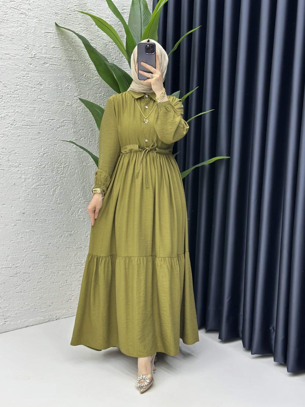 Hümeyra Tesettür Elbise Yağ Yeşili