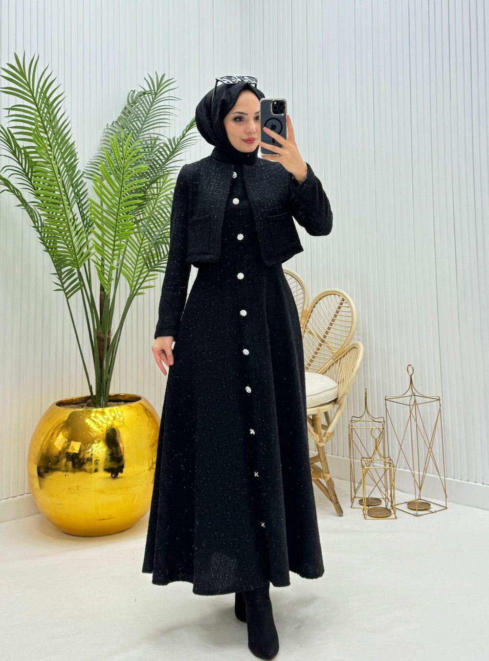 elbise ceket olmak üzere 2 parçadan oluşmaktadır elbise düğmeli ceket ceplidir