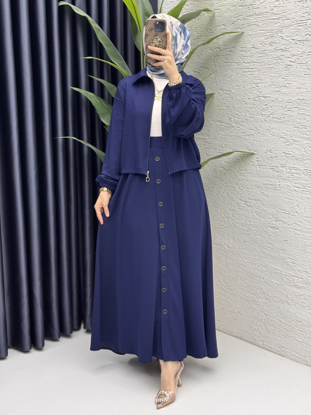İlve Etekli Takım Tesettür Giyim Lacivert