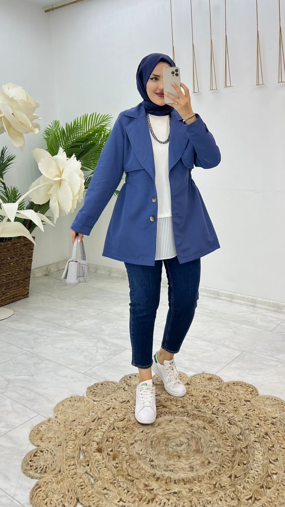 İndigo Premıum Astarlı Lema Trench Tesettür Giyim