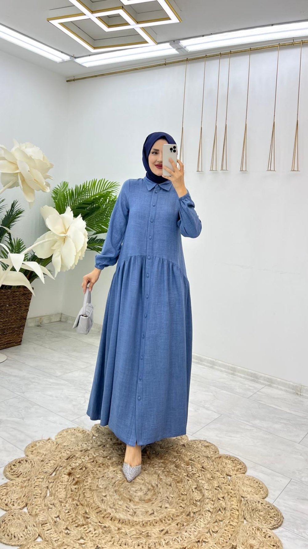 İndigo Yaren Keten Elbise Tesettür Giyim