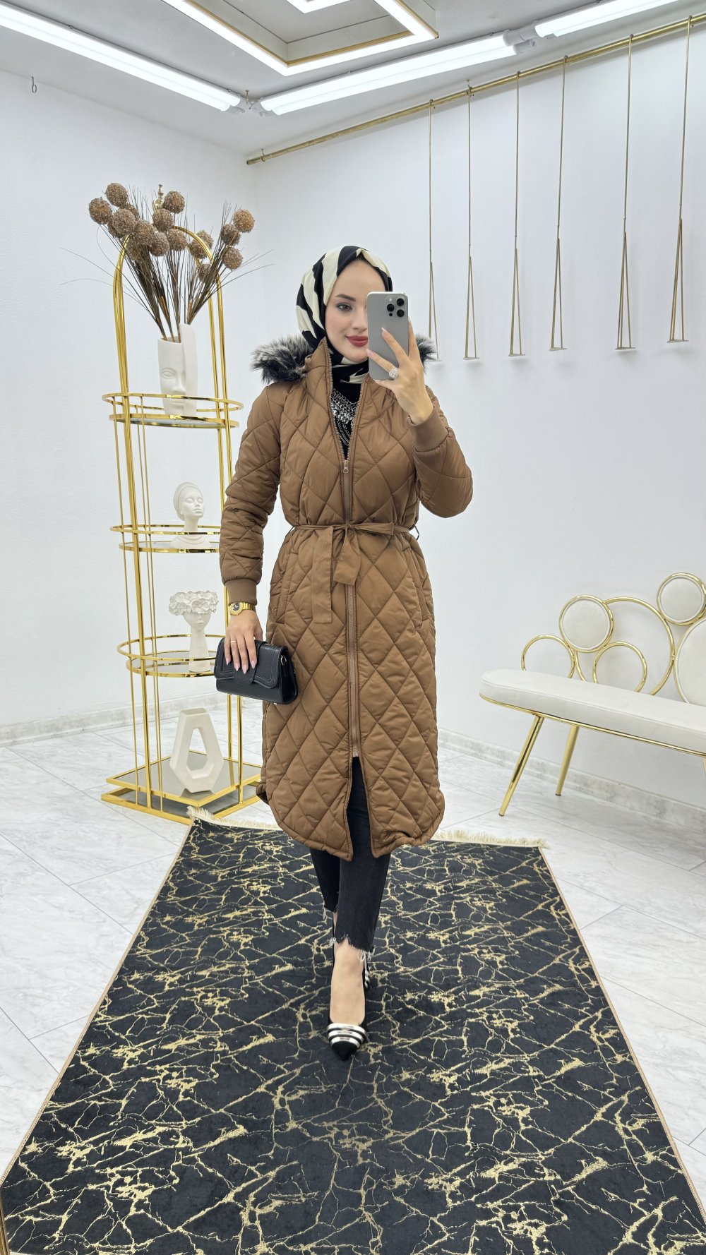 Kahve Armalı Mont Premium Kalite Tesettür Giyim