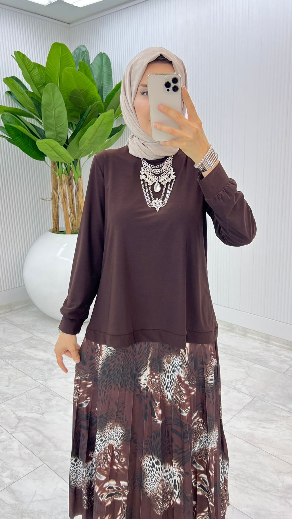 Kahve Gökyüzü Etek Takım Tesettür Giyim