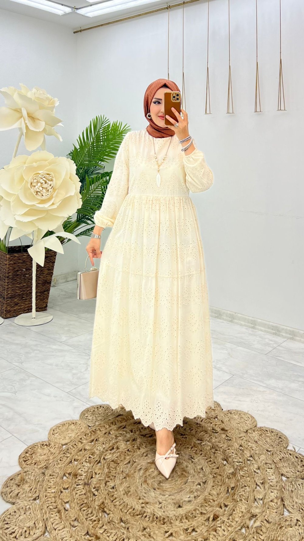 Krem Jasmin Brode Elbise Tesettür Giyim
