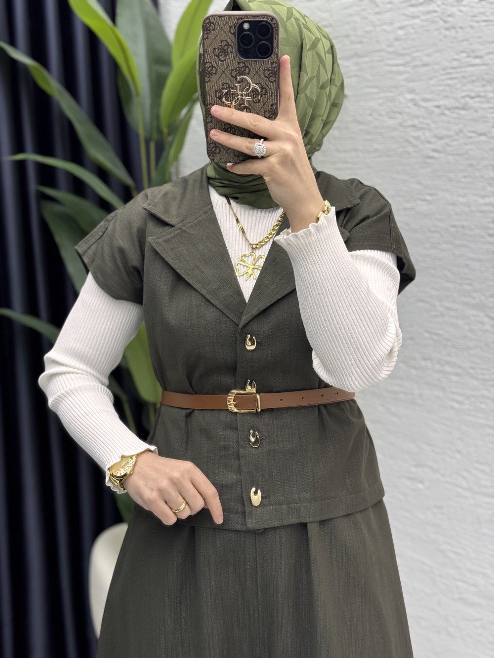 İster kemerli ister kemersiz kullanabileceğiniz etek yelek takımımız satışta