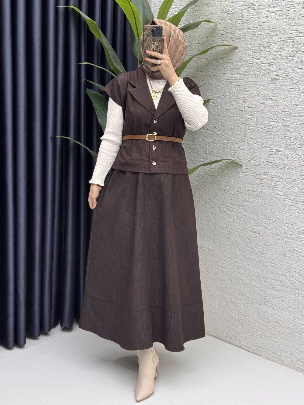 Limra Etekli Takım Tesettür Giyim Kahverengi