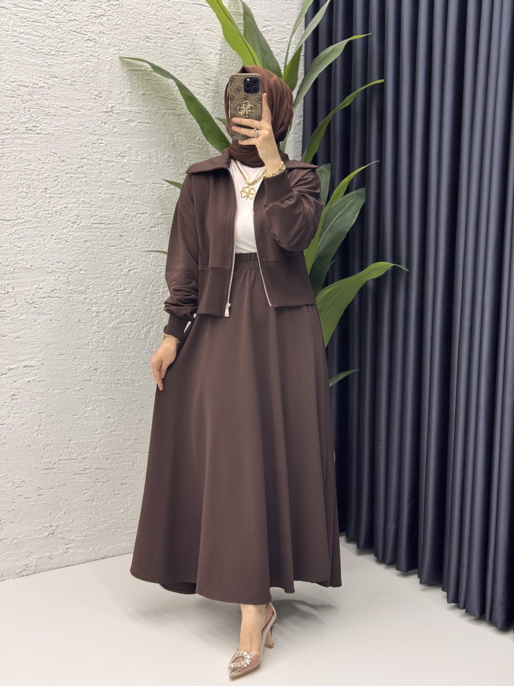 Liyan Etekli Takım Kahverengi