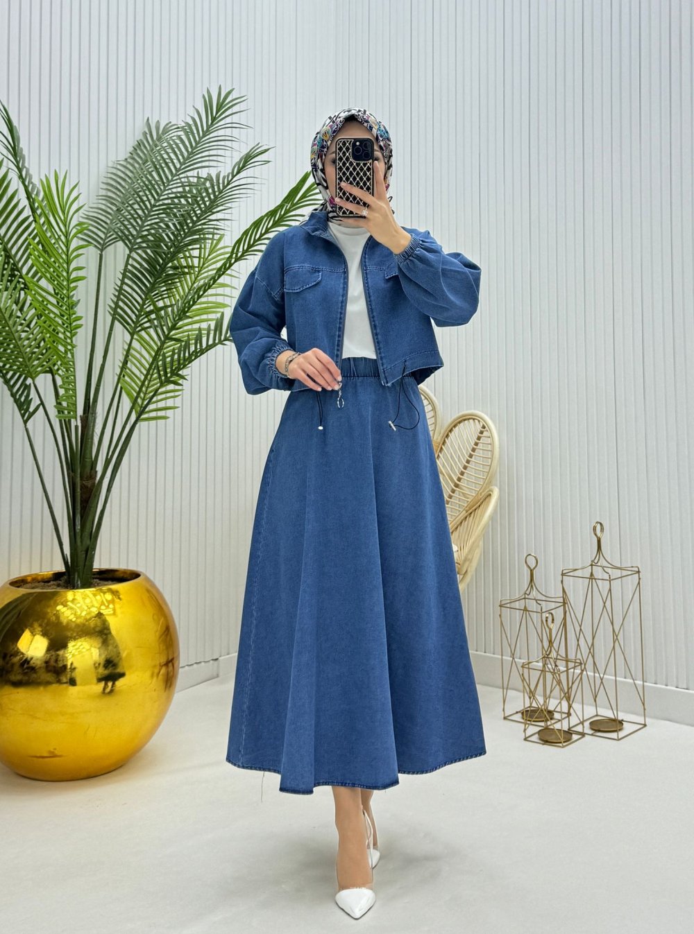 Ürün ceket ve etek olmak üzere iki parçadan oluşmaktadır.