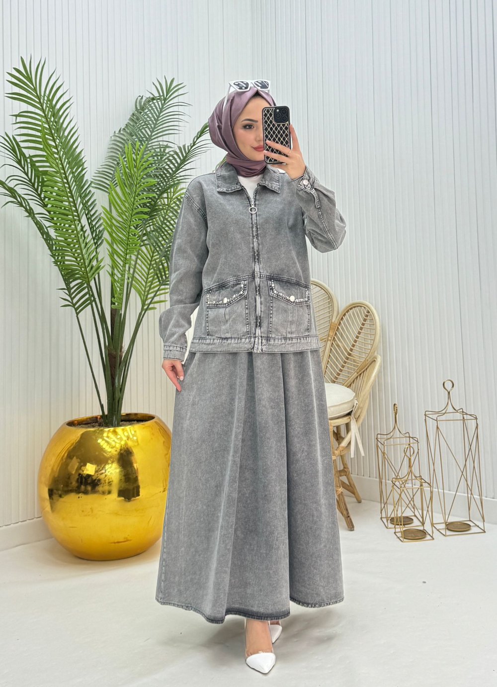Nida Tesettür Takım Gri Gri