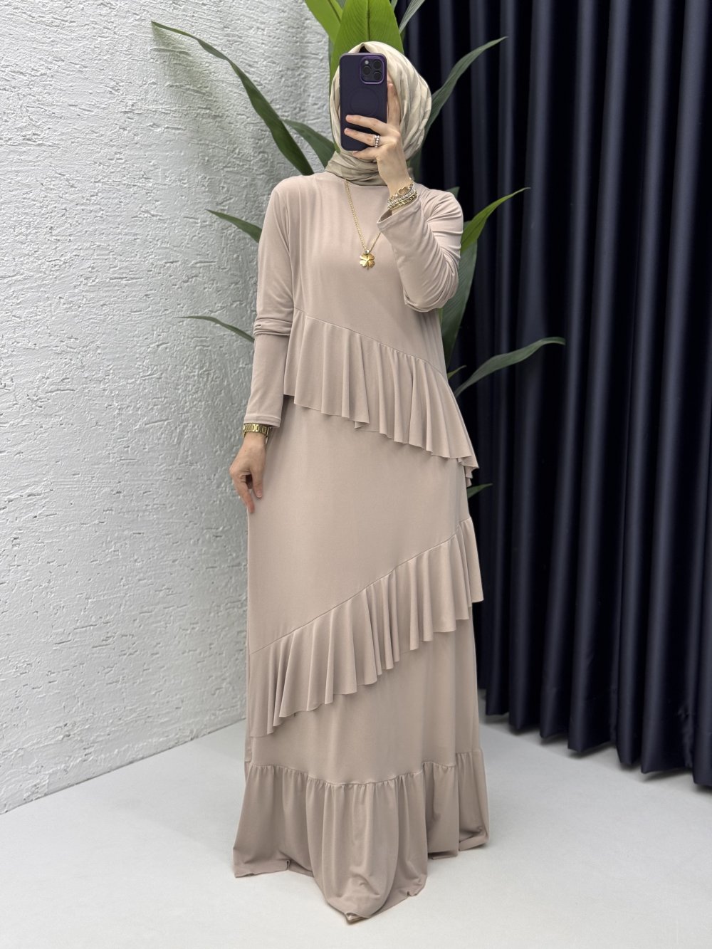 Sahra Elbise Tesettür Giyim Taş Rengi