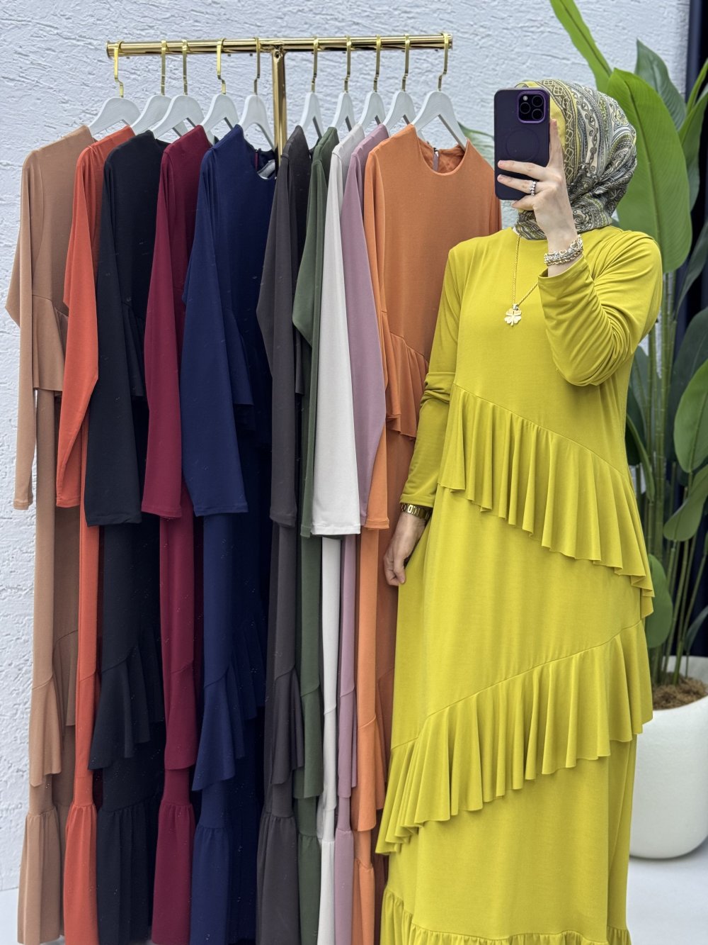 Sahra Elbise Tesettür Giyim Yağ Yeşili