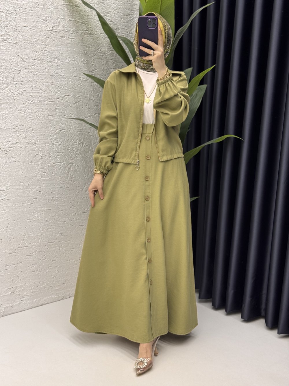 Seren Takım Tesettür Giyim Yağ Yeşili
