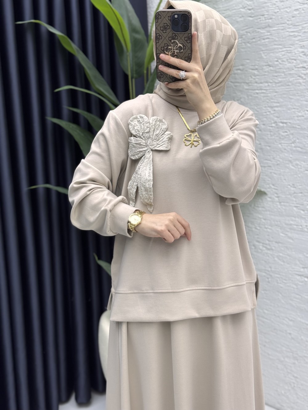 Simla Etekli Takım Tesettür Giyim Taş Rengi