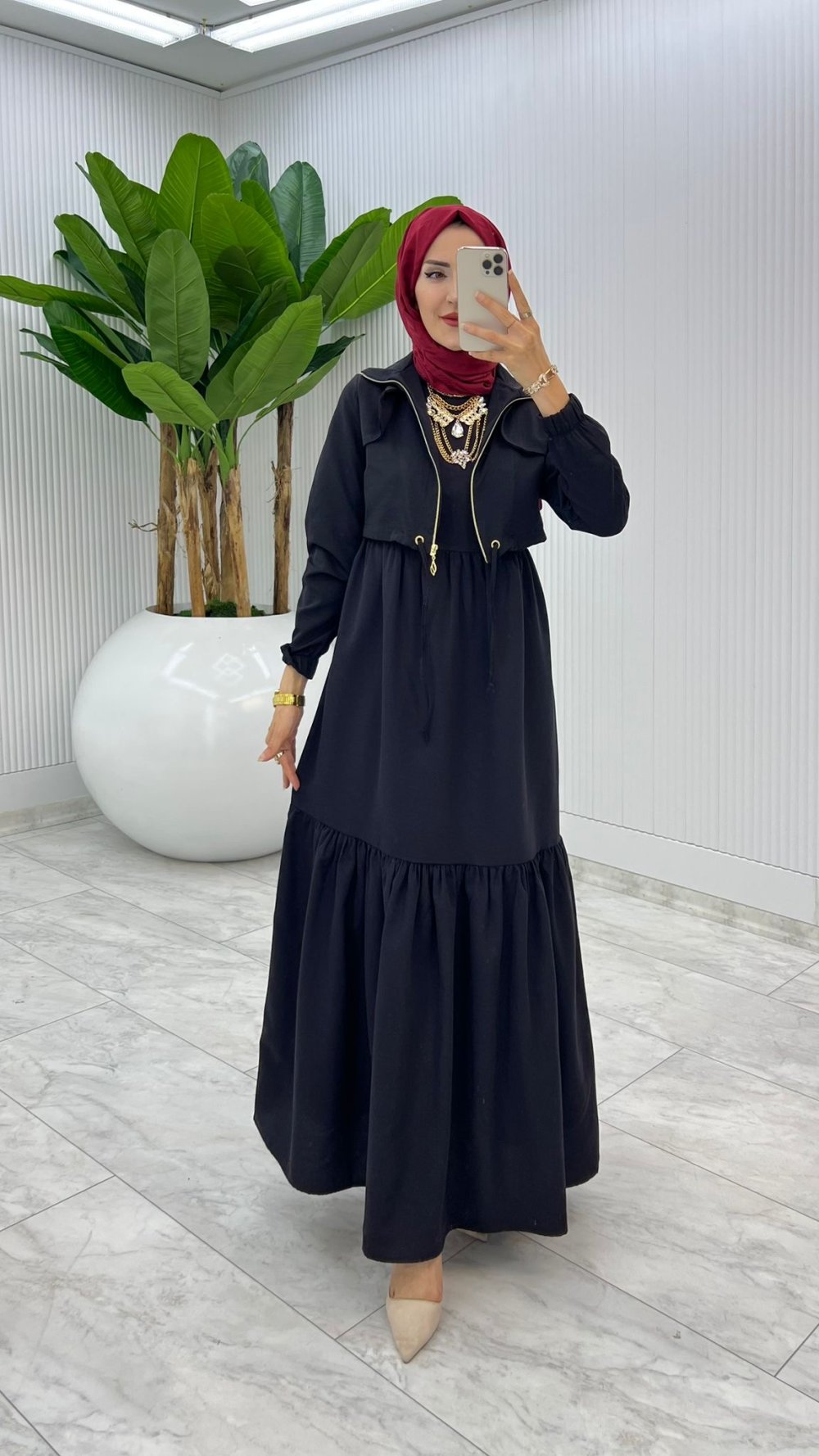 Siyah Hicran Elbise Takım Tesettür Elbise