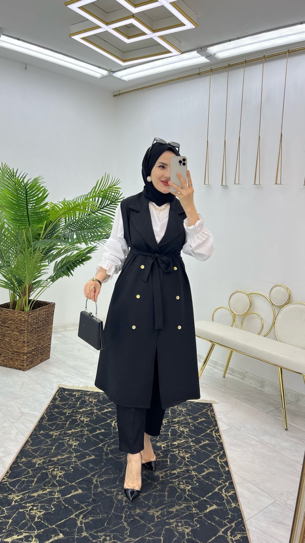 Siyah Nur Yelekli Takım Tesettür Giyim
