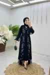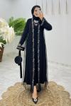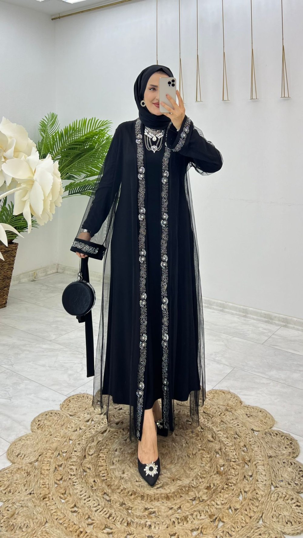 Tasarım Siyah Su Yolu Abaya Takım Tesettür Giyim