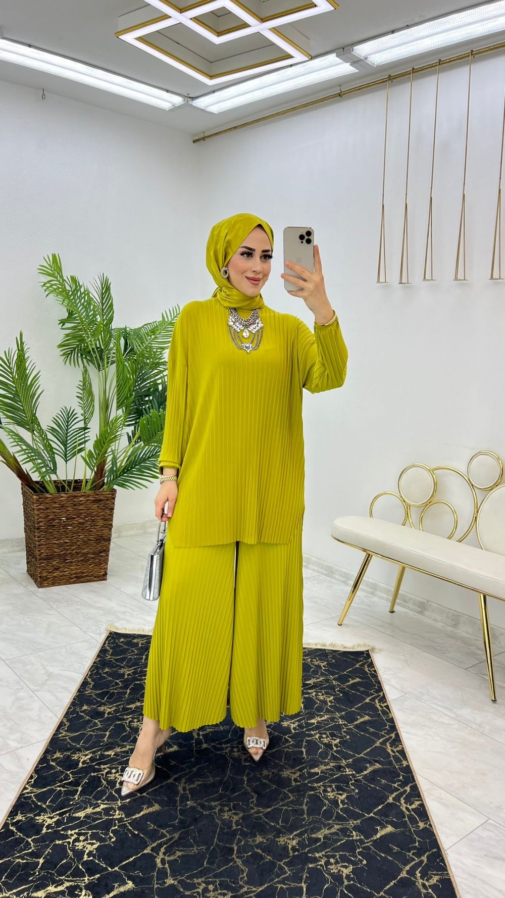 Yağ Yeşil Ela Takım Tesettür Giyim